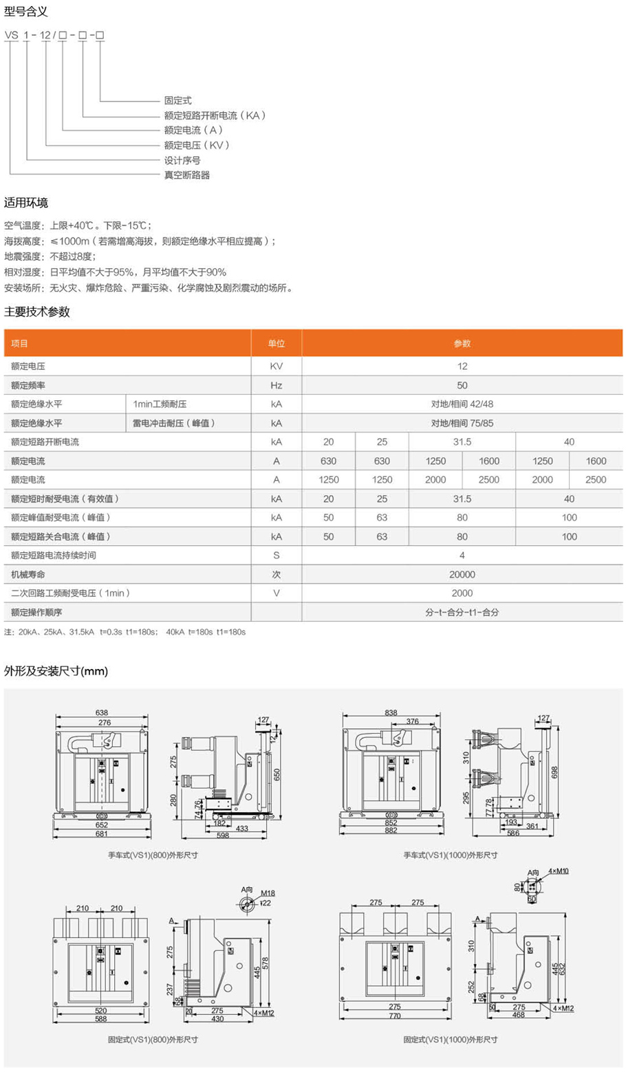 VS1-12型戶內高壓真空斷路器,系三相交流50Hz額定電壓為12KV電力系統(tǒng)的戶內開關設備,作為電網設備、工礦企業(yè)動力設備的保護和控制單元。適用于要求在額定工作電流下的頻繁操作,或多交開斷短路電流的場所。