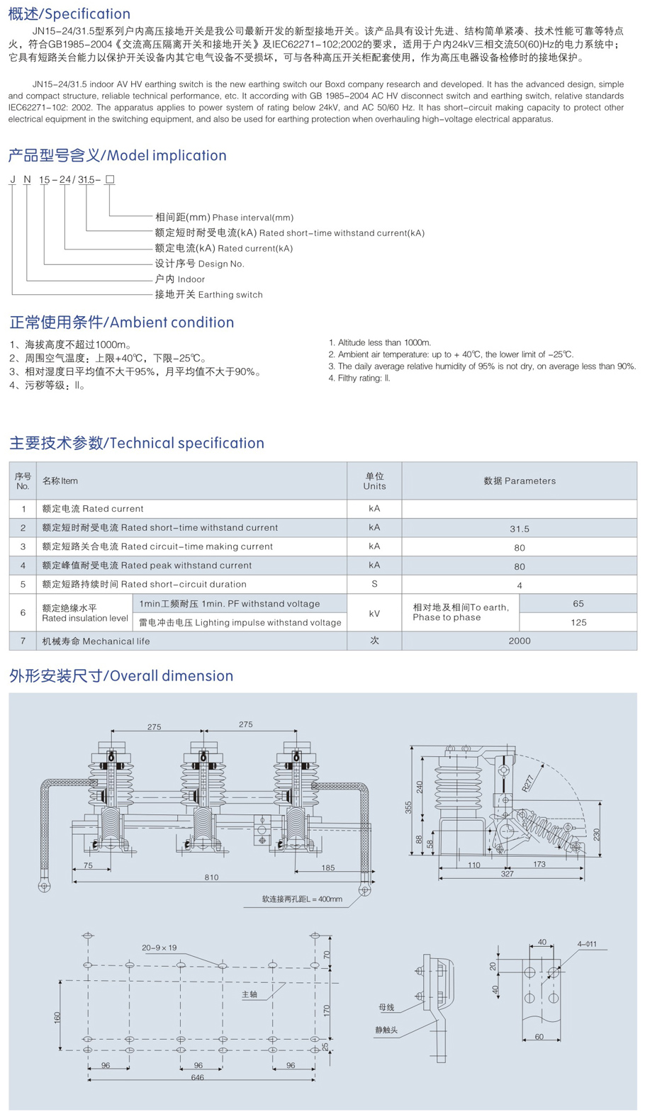 JN15-12/31.5高壓接地開關(guān)