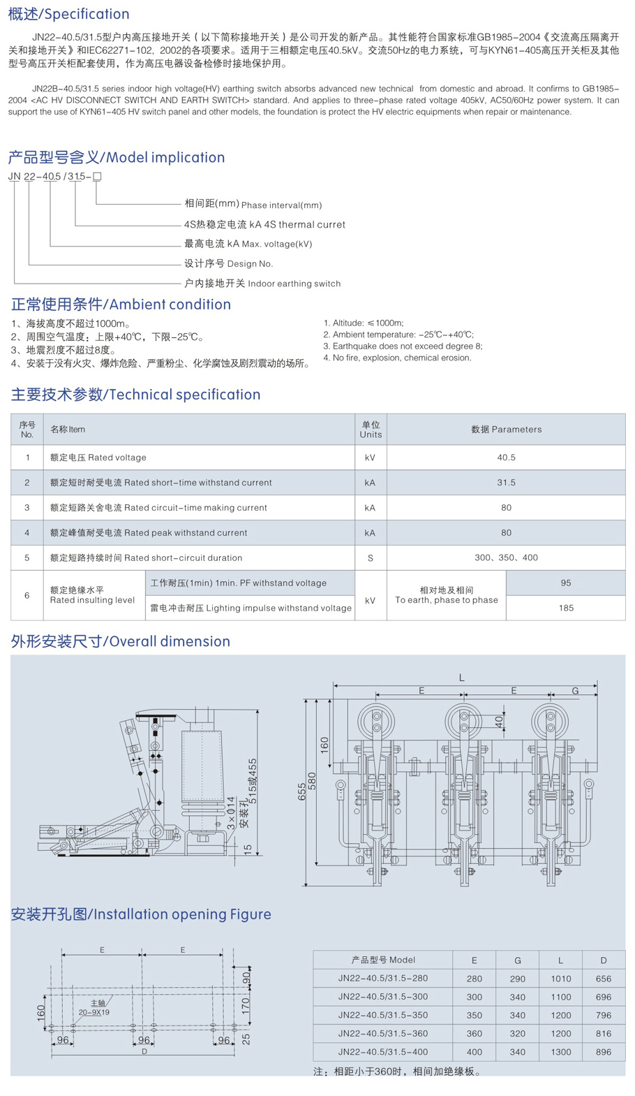 JN22-40.5/31.5高壓接地開(kāi)關(guān)